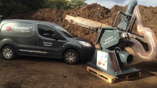 The EH-81 Airhog removes light fraction contaminants such as paper, plastic and foil from heavy applications using a frequency controlled heavy duty fan, air hose and extraction hood.